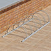 This bike rack will accommodate bikes in a wide variety of sizes. Models are available in single-side (to fit adjacent to walls) and double-side styles (to hold bikes on both sides). Both bike rack styles can be ganged together on the ends to supply the needed amount of parking. Bikes are parked on 16" centers per side.