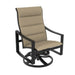 Exhibits simple, graceful lines and a wide frame. This outdoor dining chair features two pieces of designer fabric slung across the seat and back to provide comfort with modern styling. The Kenzo Padded Sling Swivel Action Lounger delivers optimal comfort for relaxation all day long.