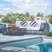 Outdoor club chair perfect for garden or poolside soirees. With a handsome profile and an urban tropical look, the Nest chair features sturdy construction of all-weather wicker wrapped around a lightweight aluminum frame. Over time, more elements were added to the collection, resulting in a comprehensive offering. The Nest is offered in a graphite finish topped with plush cushions covered in all-weather acrylic Sunbrella fabrics. Nest or entertain al fresco in subtle style.