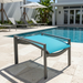 Inspired by mid-century modern design, the contemporary KOR Padded Sling Ottoman features an edgy design with arched, angled legs. The outdoor ottoman features two pieces of fabric slung across the seat and back frame and extra padding to create a modern look while enhancing comfort. KOR Padded Sling Ottomans are sure to make a statement on the patio.