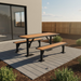 The Arches Recycled Cantilever Table pairs with our Arches collection of tables, benches, and trash receptacles. The Arches collection is available in a recycled or all-steel version.