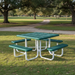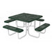 Our Perforated Square Pedestal Table features a modern frame style with a great metal design for an inviting look. With its pedestal design, this picnic table is great for any location where comfortable and inviting seating is needed.