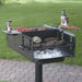 All welded cooking grate construction. The cooking grates are fabricated using 5/8" dia. steel bars for support handles, and 1/2" dia. steel bars for the cooking surface. All grate bars are welded on both sides. The cooking grate is permanently incorporated into each firebox and cannot be removed. Grate handle grips are 1/8" x 1/2" coiled steel bars.