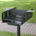 Model N2-2032 charcoal grill provides a total of 600 sq. inches of cooking area on twin 300 sq. inch four level adjustable back-to-back cooking grates.