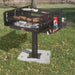 This charcoal grill stands on a 4-1/2" OD post (B7) and features a 10" sq. bolt-down plate for installation onto a concrete surface. Four 1/2" x 6" j-bolt anchors are included for installation on a new concrete footing.