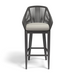 The Milano Barstool embodies clean lines and thoughtful angles with its angled frame and striated rope design. Its rust-free aluminum frame is expertly hand-wrapped with premium all-weather olefin rope in a charcoal-grey, and is finished with a slate tapered leg.