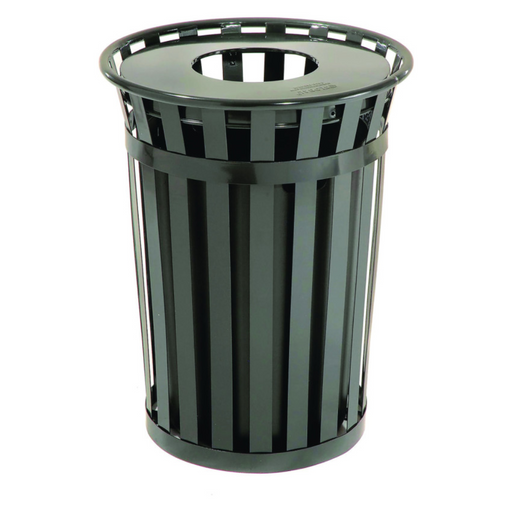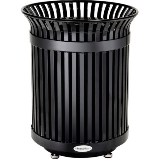 Outdoor Extra Heavy-Duty Slatted Steel Trash Can, 36 Gallon, 34"H, Black