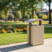 Airi curved top trash receptacle showcases a high-end designer look with smart ergonomics. This conveniently sized receptacle pairs beautifully with Airi benches.