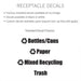 - Factory-installed recycling decals are available upon request at no charge; call or email for custom decal pricing