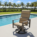 Exhibits simple, graceful lines and a wide frame. This outdoor dining chair features two pieces of designer fabric slung across the seat and back to provide comfort with modern styling. This outdoor swivel rocker has a high back for optimal head support. The Kenzo Padded Sling High Back Swivel Rocker delivers comfort for relaxation all day long.