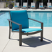 Inspired by mid-century modern design, the contemporary KOR Padded Sling Spa Chair features an edgy design with a curved back and arms and arched, angled legs. The outdoor spa chair features two pieces of fabric slung across the seat and back frame and extra padding to create a modern look while enhancing comfort. KOR Padded Sling Spa Chairs nest for easy storage and are sure to make a statement around the pool or at the beach.